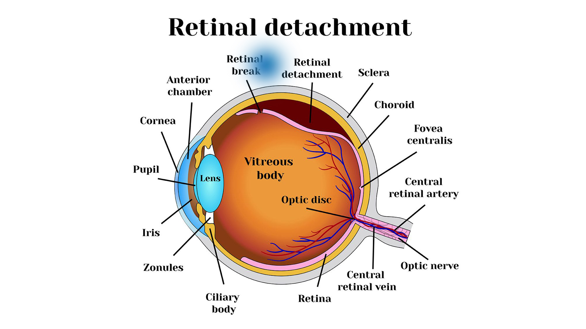 Retinal detachment occurs when the retina separates from the back of your eye. This causes loss of vision that can be partial or total, depending on how much of the retina is detached. When your retina becomes detached, its cells may be seriously deprived of oxygen. Retinal detachment is a medical emergency.There’s a risk of permanent vision loss if retinal detachment is left untreated or if treatment is delayed.
